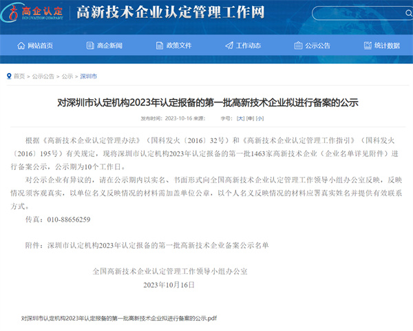 10月16日,全國高新技術(shù)企業(yè)認(rèn)定管理工作領(lǐng)導(dǎo)小組辦公室發(fā)布了《對深圳市認(rèn)定機構(gòu)2023年認(rèn)定報備的第一批高新技術(shù)企業(yè)擬進行備案的公示》,經(jīng)10個工作日的結(jié)果公示后,深圳市政院順利通過2023年第一批“國家高新技術(shù)企業(yè)”復(fù)審認(rèn)定。這是深圳市政院自2011年首次認(rèn)定以來的第五次參與認(rèn)定。