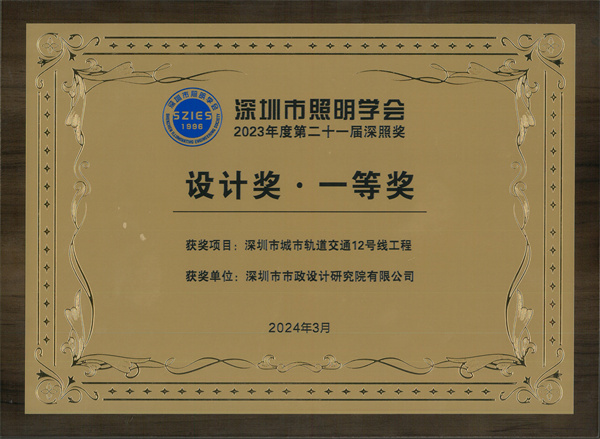 近日,深圳市照明學會舉辦了2023年度第二十一屆“深照獎”頒獎典禮。公司軌道交通院承擔勘察設(shè)計總承包的“深圳市城市軌道交通12號線工程”榮獲“深照獎”設(shè)計獎一等獎。