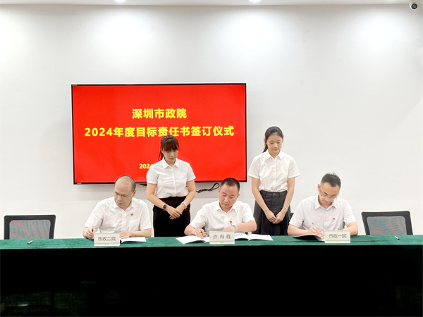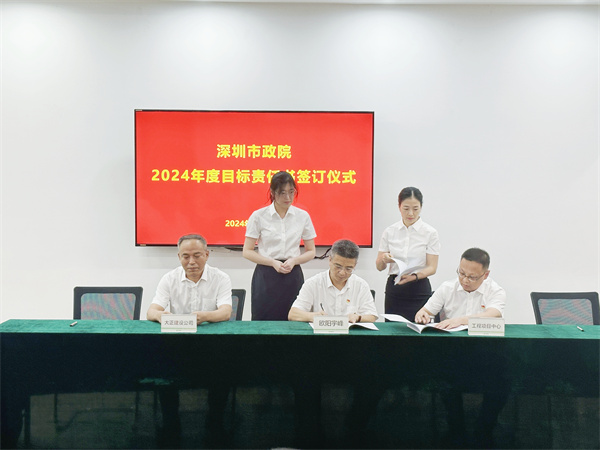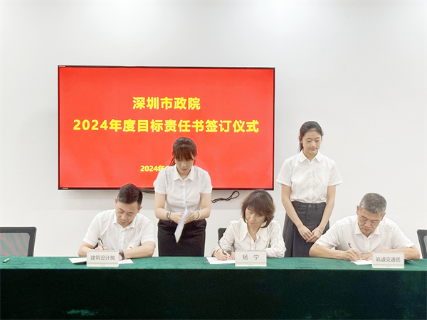 會議首先宣讀了深圳市政院組織架構(gòu)調(diào)整、外地分院整合和領(lǐng)導(dǎo)分工三個(gè)文件。隨后,深圳市政院總經(jīng)理張中安與各生產(chǎn)部門分管領(lǐng)導(dǎo)分別簽訂了2024年目標(biāo)責(zé)任書。各生產(chǎn)部門分管領(lǐng)導(dǎo)與分管部門分別簽訂了2024年目標(biāo)責(zé)任書。