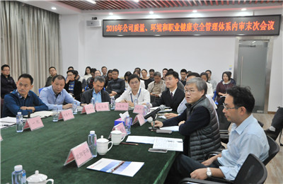 2016年12月9日下午,我司召開2016年公司三體系內(nèi)審末次會議暨管理評審會,我司黨委書記、董事長陳宜言、總經(jīng)理蔡明、監(jiān)事會主席宋榮亮、黨委副書記、紀(jì)委書記、工會主席郭明、副總經(jīng)理王建新、副總經(jīng)理張建君、副總經(jīng)理許華林、總工程師徐波,中層正、副職及各審核組代表出席了本次會議。會議由我司管理者代表徐波總工程師主持。