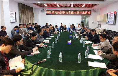 在二個多小時的報告中,聶院士首先深情回憶起二十年前和陳宜言董事長一起在深圳彩虹(北站)橋設計中開展組合橋面系結構創(chuàng)新工作的經歷和寶貴經驗,贊揚了我公司多年以來在堅持以鋼-混凝土組合結構橋梁為主的設計中取得突出成績。隨后聶院士系統(tǒng)介紹了鋼-混凝土組合結構的最新研究成果,通過大量的工程設計案例數據對比,展示了在中、小跨徑橋梁中使用鋼-混凝土組合結構的各項顯著優(yōu)點,扭轉了設計人員在日常工作中的部分片面認識,深刻理解了設計是工程靈魂的先進理念。