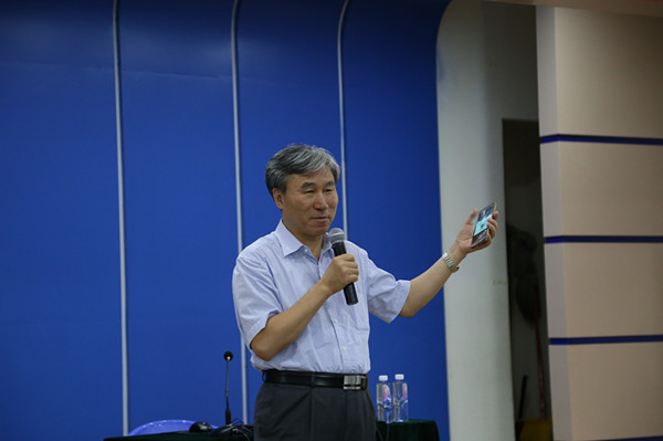 緊接著,陳宜言大師對參會人員進行了新聞圖片攝影的宣傳培訓(xùn)。他一改以往用電腦放映PPT課件的模式,利用手機移動終端連接數(shù)碼屏幕進行授課,并在現(xiàn)場實時拍照,手把手教授拍照和修圖,充分體現(xiàn)出時代性和先進性;同時,他從實際案例出發(fā),正反對比,圖文并茂地為大家講授拍照角度、人物站位、構(gòu)圖方式,給大家上了生動的一課。