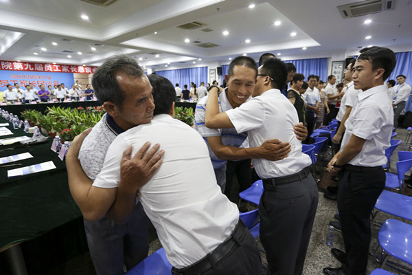 懇談會在市政院院歌中拉開序幕。會議開始,蔡明總經(jīng)理致歡迎辭,對各位領導、嘉賓和員工家長們的光臨表示熱烈歡迎和感謝,并詳細介紹了公司的基本情況。在交流開始前,在公司董事長陳宜言大師提議下,員工們先與自己的父母面對面相互對望,向辛勤養(yǎng)育自己20多年的父母,深深地鞠了一躬,喊出“爸爸、媽媽,我愛您!”,并送上最真摯、溫暖、感恩的擁抱,溫馨的場面感動了在場的所有人。