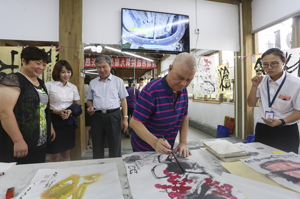 懇談會后,家長們來到公司八樓“職工之家”,參加了書畫交流活動。魏治平、丁廣偉、董兵團、徐怡、鄒國榮等多位書畫家現(xiàn)場揮毫潑墨、點染丹青。