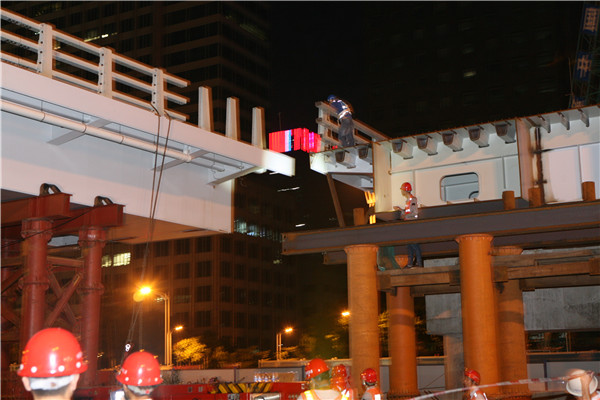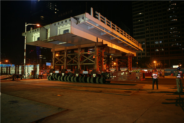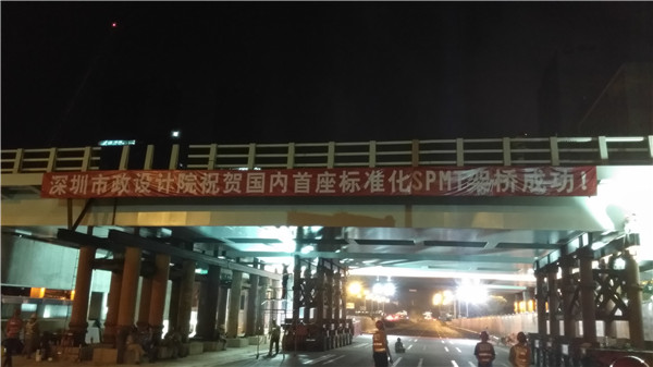 2017年9月22日至23日,國內(nèi)首架采用標(biāo)準(zhǔn)化SPMT技術(shù)施工的“深圳市崗廈北綜合交通樞紐工程—鋼便橋”架設(shè)成功。架設(shè)方案由我公司提出,完全符合業(yè)主方地鐵集團(tuán)對于降低施工現(xiàn)場對環(huán)境及交通影響的要求,中國中鐵第二工程局具體實(shí)施。