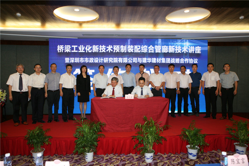 為加強(qiáng)院、企合作,提升院、企技術(shù)水平和創(chuàng)新能力,有效貫徹國(guó)家、省、市建設(shè)主管部門關(guān)于發(fā)展建筑產(chǎn)業(yè)化的相關(guān)要求,促進(jìn)建筑產(chǎn)業(yè)化在市政工程中的應(yīng)用,加強(qiáng)行業(yè)間學(xué)術(shù)和技術(shù)交流,2017年10月13日,“橋梁工業(yè)化新技術(shù)、預(yù)制裝配綜合管廊新技術(shù)講座”暨“深圳市市政設(shè)計(jì)研究院有限公司與建華建材集團(tuán)戰(zhàn)略合作協(xié)議簽約儀式”在深圳舉行。會(huì)議由深圳市市政設(shè)計(jì)研究院有限公司、建華建材集團(tuán)聯(lián)合舉辦,并邀請(qǐng)我國(guó)市政行業(yè)知名專家學(xué)者來深主講,深圳市市政行業(yè)設(shè)計(jì)、施工、建設(shè)、管理單位,以及來自多個(gè)省市的市政行業(yè)領(lǐng)導(dǎo)和相關(guān)技術(shù)人員共200人參會(huì),會(huì)議由我公司徐波總工程師主持。