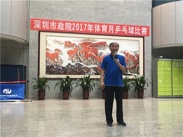 2017年11月14日下午,市政院2017年體育活動(dòng)月乒乓球比賽在市政設(shè)計(jì)大廈主樓大堂精彩開戰(zhàn)。國球乒乓一直深得公司員工喜愛,今年的體育月乒乓球賽吸引了各部門眾多乒乓愛好者參與。參賽選手們激情滿懷,觀戰(zhàn)的同事們熱情高漲,助威聲、贊嘆聲此起彼伏,熱烈的氣氛洋溢在比賽現(xiàn)場。公司董事長陳宜言為比賽致辭,并與副總經(jīng)理張健君一起為比賽開球。副總經(jīng)理公司許華林也親臨比賽現(xiàn)場為運(yùn)動(dòng)員們加油。