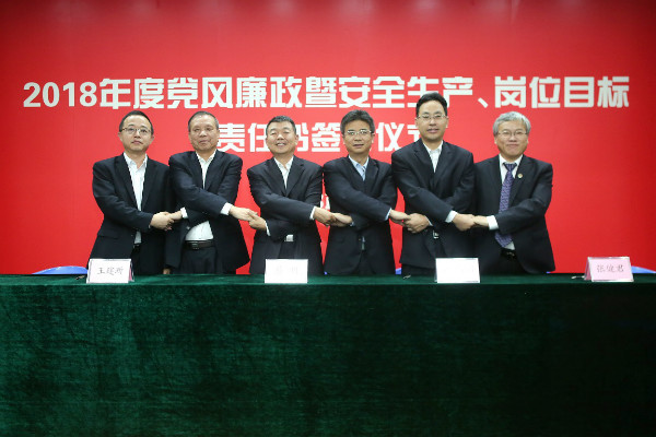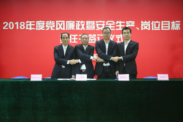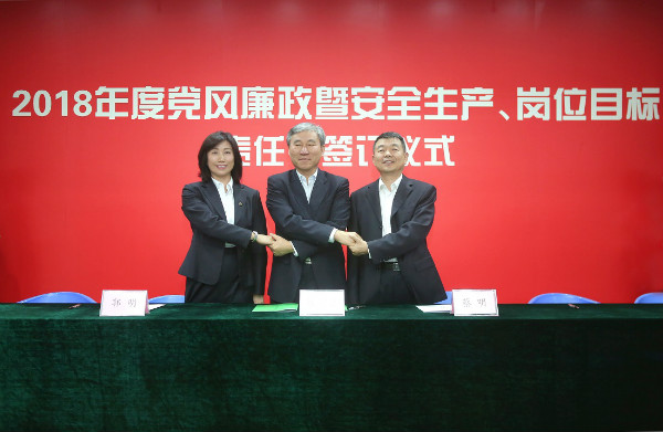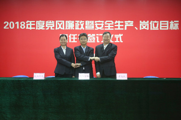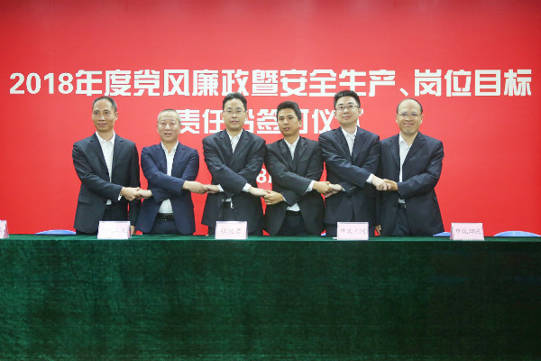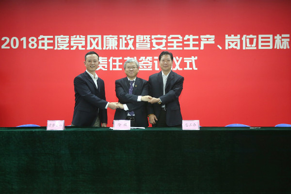 儀式開(kāi)始,黨委書(shū)記、董事長(zhǎng)陳宜言與黨委副書(shū)記、總經(jīng)理蔡明和黨委副書(shū)記、紀(jì)委書(shū)記、工會(huì)主席郭明簽署了《2018年度崗位目標(biāo)責(zé)任書(shū)》、《2018年度黨風(fēng)廉政責(zé)任書(shū)》及《2018年度安全生產(chǎn)責(zé)任書(shū)》。黨委副書(shū)記、總經(jīng)理蔡明與副總經(jīng)理歐陽(yáng)宇峰、副總經(jīng)理王建新、副總經(jīng)理張健君、副總經(jīng)理許華林、總工程師徐波簽署責(zé)任書(shū)。緊接著,各分管領(lǐng)導(dǎo)與分管部門(mén)負(fù)責(zé)人簽署責(zé)任書(shū)。