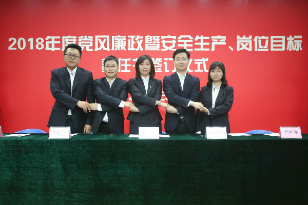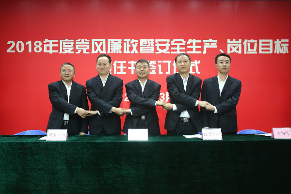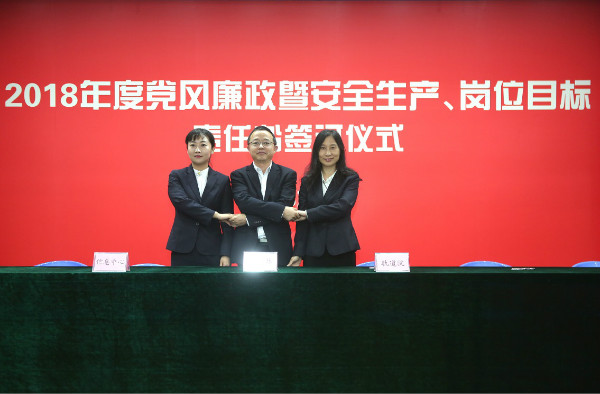 “千斤重?fù)?dān)眾人挑,人人肩上有指標(biāo)”,2018年黨風(fēng)廉政暨安全生產(chǎn)、崗位目標(biāo)責(zé)任書(shū)的簽訂,標(biāo)志著新一年各項(xiàng)工作全面分解落實(shí),希望大家不忘初心,在新時(shí)代新使命的召喚下,在新思想的引領(lǐng)下,堅(jiān)韌不拔,鍥而不舍,腳踏實(shí)地,確保2018年度各項(xiàng)目標(biāo)圓滿完成,公司發(fā)展更上一個(gè)臺(tái)階。
