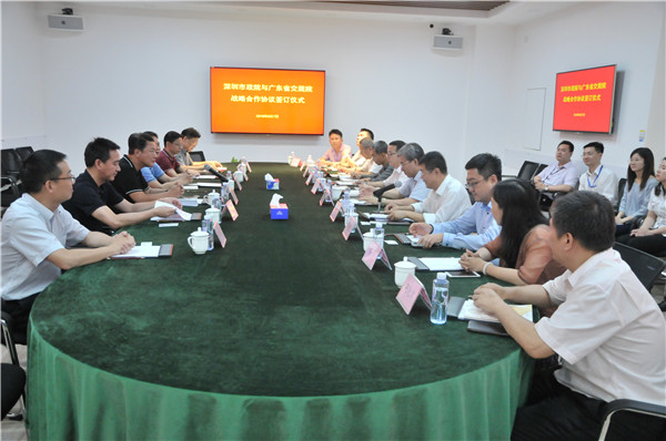 2018年5月7日,我公司與廣東省交通規(guī)劃設(shè)計研究院股份有限公司(以下簡稱省交規(guī)院)在深圳簽署戰(zhàn)略合作框架協(xié)議,旨在通過戰(zhàn)略合作,緊緊抓住市政交通(含軌道交通)基礎(chǔ)設(shè)施建設(shè)機遇期,建立技術(shù)和資源為紐帶的緊密戰(zhàn)略合作關(guān)系。全國工程勘察設(shè)計大師、我公司黨委書記、董事長陳宜言,省交規(guī)院黨委書記、董事長李江山代表雙方簽署協(xié)議并講話。此外,省交規(guī)院總經(jīng)理黃湛軍、副總經(jīng)理姜啟珍,我公司總經(jīng)理蔡明、副總經(jīng)理許華林等雙方高層領(lǐng)導(dǎo)也出席了簽約儀式。