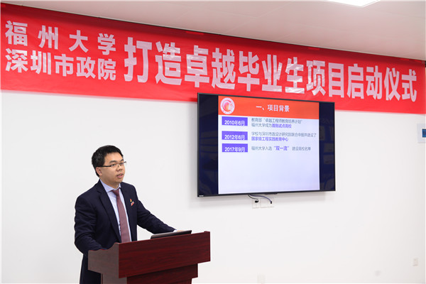 張星副校長(zhǎng)對(duì)本次參會(huì)的深圳市政院領(lǐng)導(dǎo)及企業(yè)導(dǎo)師表示感謝。他指出,校企合作打造卓越畢業(yè)生對(duì)校企雙方實(shí)現(xiàn)人才培養(yǎng)計(jì)劃具有重要意義。工科教育最重要的是實(shí)踐教育,打造卓越畢業(yè)生項(xiàng)目是“新工科”中很好的一個(gè)實(shí)踐。學(xué)生要珍惜這次機(jī)會(huì),努力在畢業(yè)設(shè)計(jì)中取得優(yōu)異的成績(jī),并預(yù)祝項(xiàng)目取得圓滿成功。