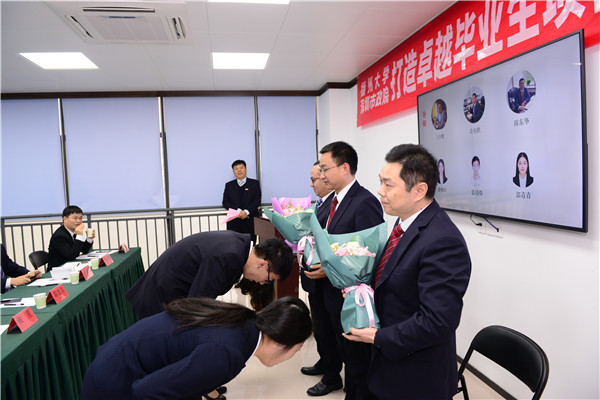 學(xué)生代表向陳宜言設(shè)計(jì)大師和張星副校長(zhǎng)獻(xiàn)花。在領(lǐng)導(dǎo)們的見(jiàn)證下,學(xué)生們分別向各自的導(dǎo)師鞠躬行拜師禮。禮畢后,校企生代表上臺(tái)簽訂三方協(xié)議,我公司與福州大學(xué)完成學(xué)生交接。