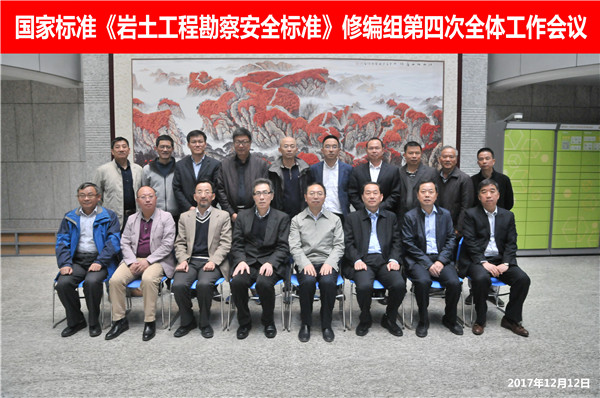 2017年12月12日至13日,國(guó)家標(biāo)準(zhǔn)《巖土工程勘察安全標(biāo)準(zhǔn)》(簡(jiǎn)稱《標(biāo)準(zhǔn)》)修編組第四次全體工作會(huì)議在我公司順利召開。
