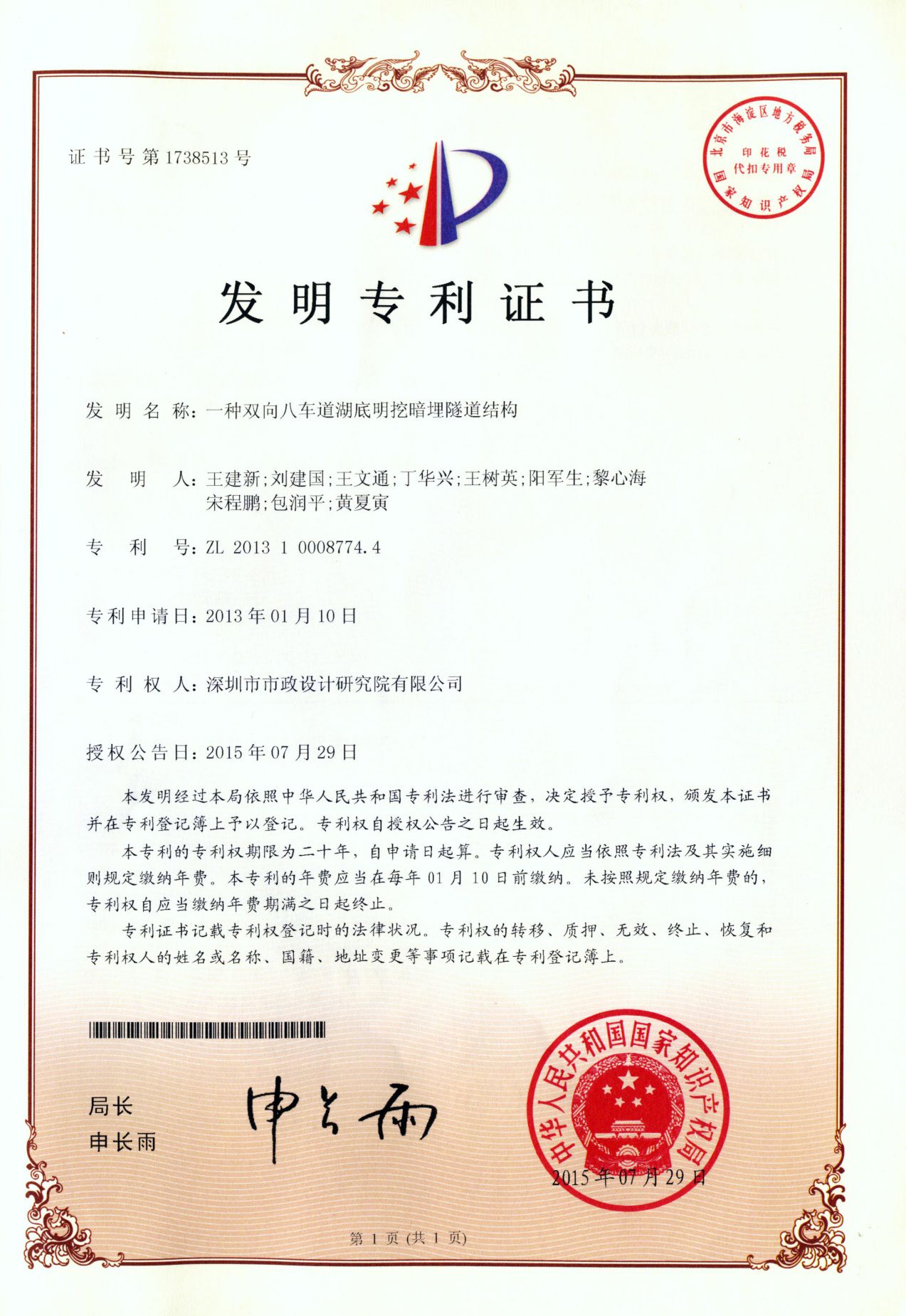 一種雙向八車道湖底明挖暗埋隧道結(jié)構(gòu)